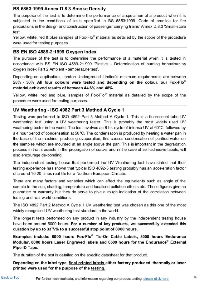 Silver fox cable labels. Siver Fox Fox-Flo LSOH Tie-On Cable Labels - SlideShare Siver Fox Fox-Flo LSOH Tie-On Cable Labels 2. Fox-Flo® Low Smoke Zero Halogen Tie-On Cable Labels This is a multipage document, all pages must be read in conjunction with each other PRODUCT TESTING Chemical/Solvent Resistance: Samples of Silver Fox Fox-Flo® labels were printed* at medium speed at medium temperature with Silver Fox DTP-1 thermal printer and TSR3/300 thermal transfer ribbons ... Silver Fox Cable Labels - Salt Mist Spray Testing For ... - Pinterest Silver Fox Fox-Flo tie-on cable labels are low-smoke, zero-halogen and UV-stable. Produced using the highest quality materials offering long-term endurance and reliability of zero halogen cable labels. The Silver Fox Fox-Flo labels are both strong and flexible and can be attached using either nylon or stainless steel cable ties. Silver Fox UV Engraved Cable Labels - ISO4892 3 UV Weathering Test Silver Fox UV Engraved Cable Labels - ISO4892 3 UV Weathering Test - YouTube 0:00 / 1:37 Silver Fox UV Engraved Cable Labels - ISO4892 3 UV Weathering Test 100 views Jan 7, 2015... Cable Labels - Silver Fox Legend™ Laser Tie-Ons Cable Labels (LXL's) Supplied in (pre-perforated) plastic A4 sheets. These labels can be simply/quickly printed using an ordinary laser printer. ... For over 20 years Silver Fox has been at the forefront of specialist labelling solutions. In offering Original Equipment Manufacturers (OEM) labelling solutions, to key ...