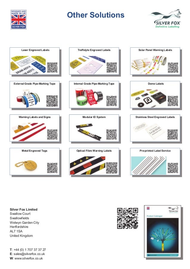 Labels - Silver Fox Silver Fox offers a wide range of durable, high-quality labels. We offer labels in a number of categories: Cable & wire labels Equipment labels Engraved labels Pipe & Valve labels Our labels have been stringently tested above industry standards. This ensures their durability and reliability. VIEW ALL VIDEOS FAQs Thermal Labels